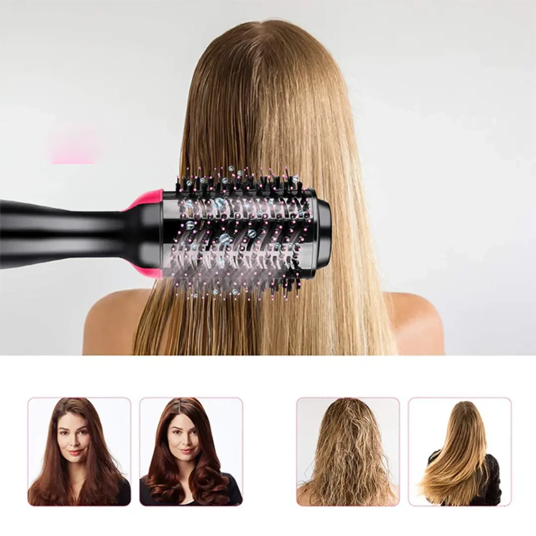 تجمع بين التجفيف والتصفيف في خطوة واحدة، مما يمنحك شعرًا ناعمًا وكثيفًا بسرعة وسهولة. تعمل بتقنية الأيونات السالبة للحفاظ على ترطيب الشعر وتقليل الهيشان، مع تصميم خفيف ومريح للاستخدام اليومي.