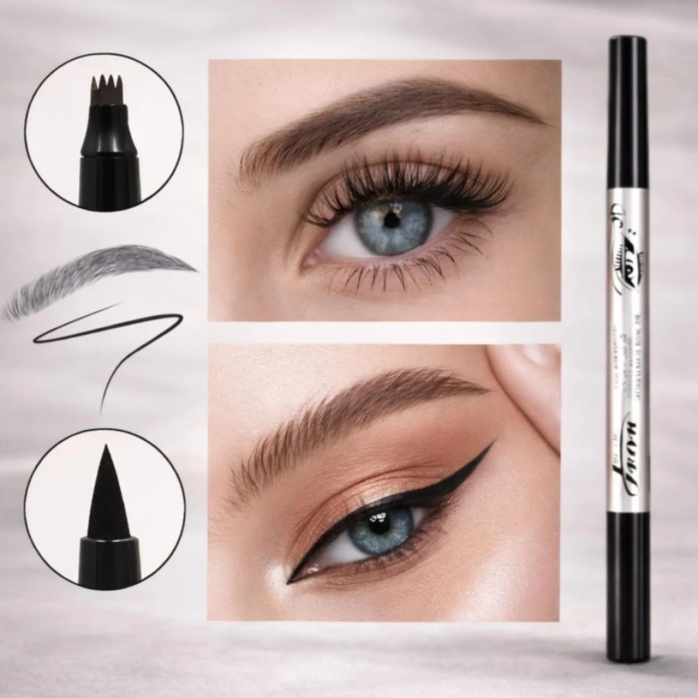 قلم رسم الحواجب شعرة شعرة و تحديدها مع حبر مقاوم للماء هو أداة مثالية للحصول على حواجب طبيعية وجذابة حيث يتميز هذا القلم الثنائي الأطراف بالحبر المقاوم للماء مما يضمن بقاء اللون والشكل ثابتين طوال اليوم بتصميمه الصغير والمدمج يجعل من السهل حمله في حقيبة اليد مما يتيح لك إمكانية تعديل حواجبك في أي وقت وأي مكان.